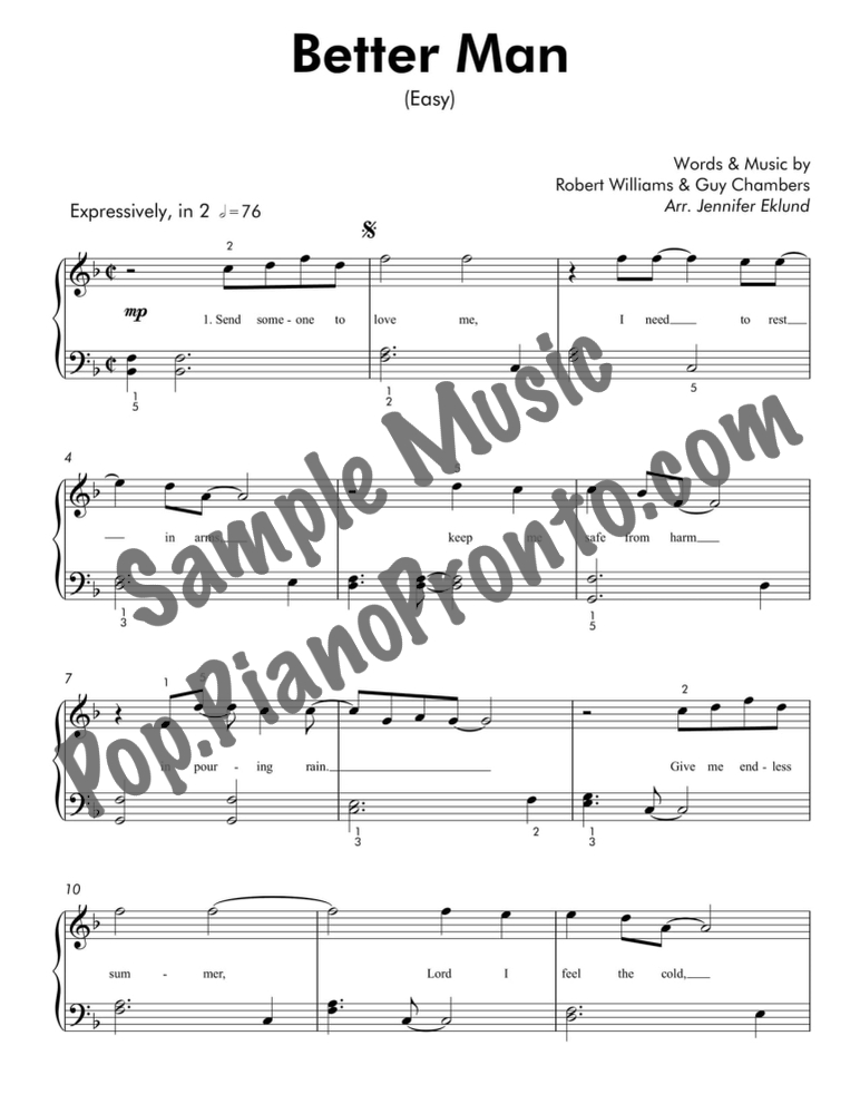 Better Man, as performed by Robbie Williams, stylishly arranged for easy piano by Jennifer Eklund.
