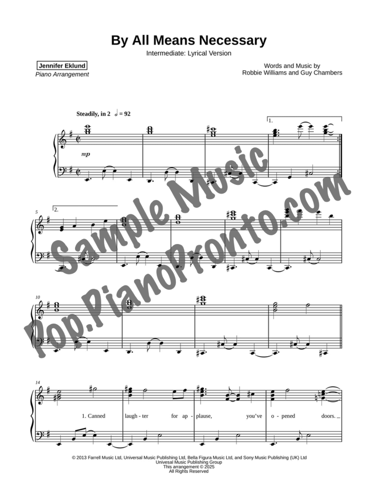 By All Means Necessary, as performed by Robbie Williams, in a sparkling lyrical piano solo for late intermediate piano by Jennifer Eklund.