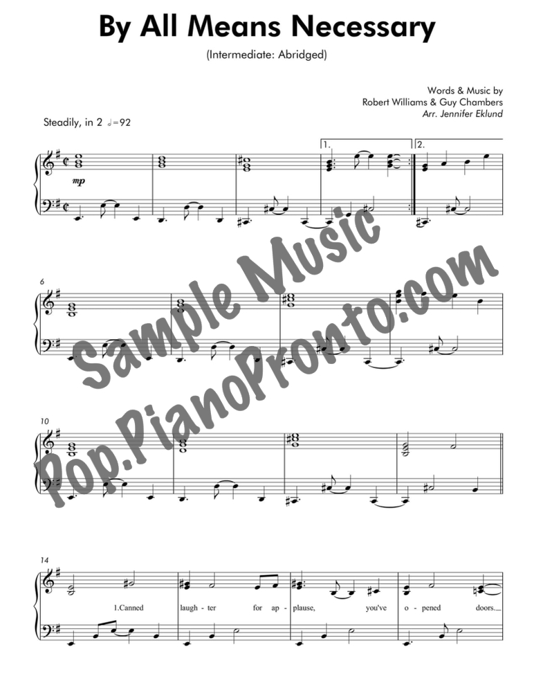 By All Means Necessary, as performed by Robbie Williams, stylishly abridged and arranged for intermediate piano by Jennifer Eklund.