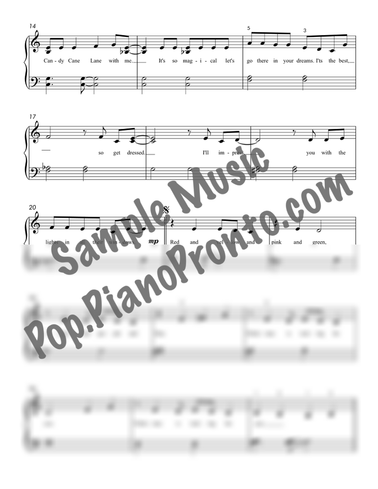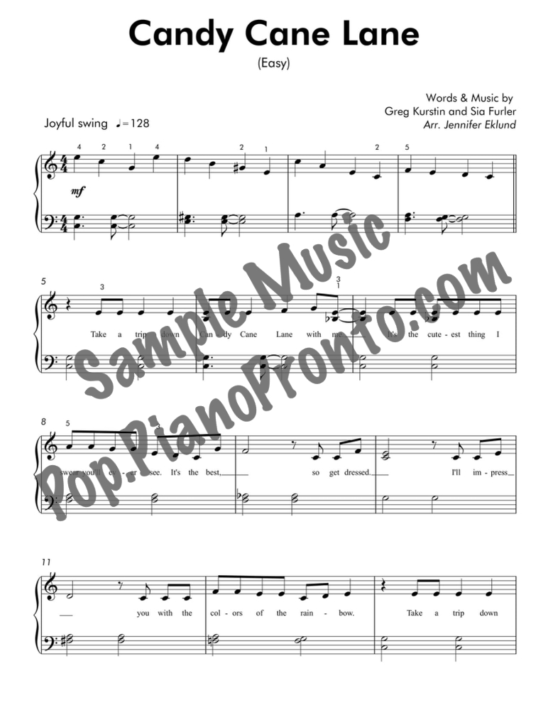 Candy Cane Lane, as performed by Sia, stylishly arranged for easy piano by Jennifer Eklund.