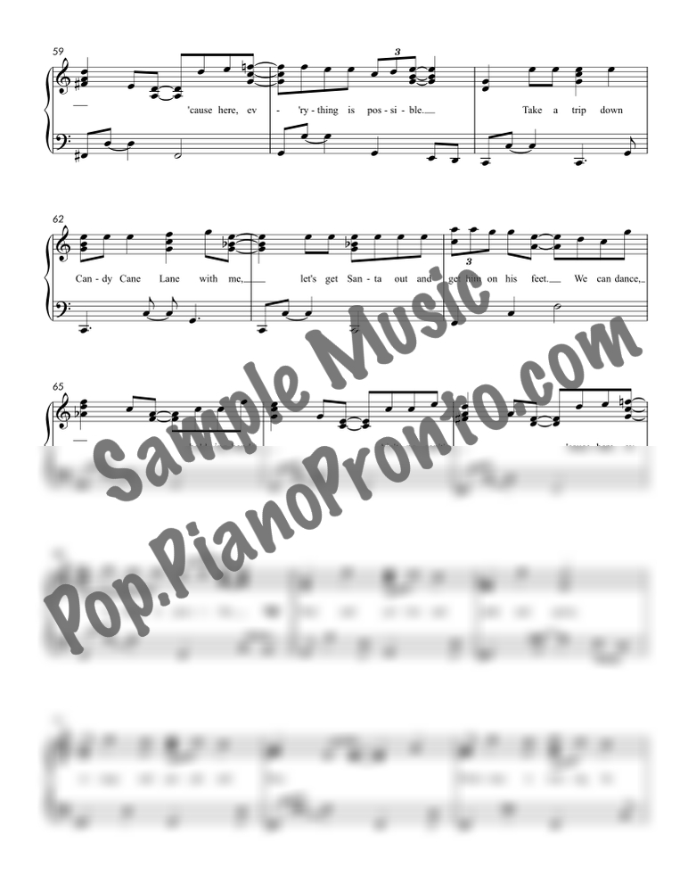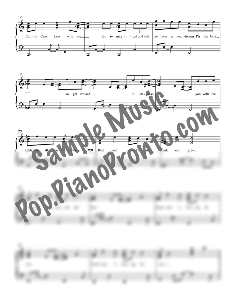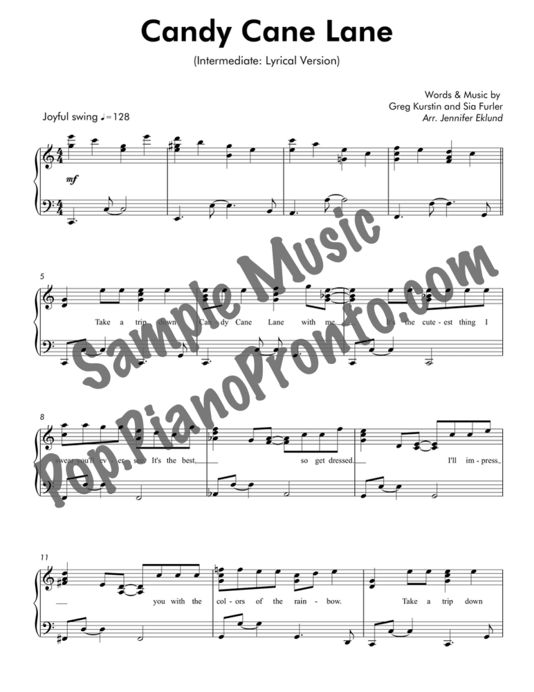 Candy Cane Lane, as performed by Sia, set as an upbeat lyrical solo for late intermediate piano by Jennifer Eklund.