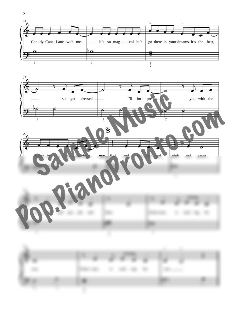 Candy Cane Lane, as performed by Sia, stylishly arranged for late beginner piano by Jennifer Eklund.