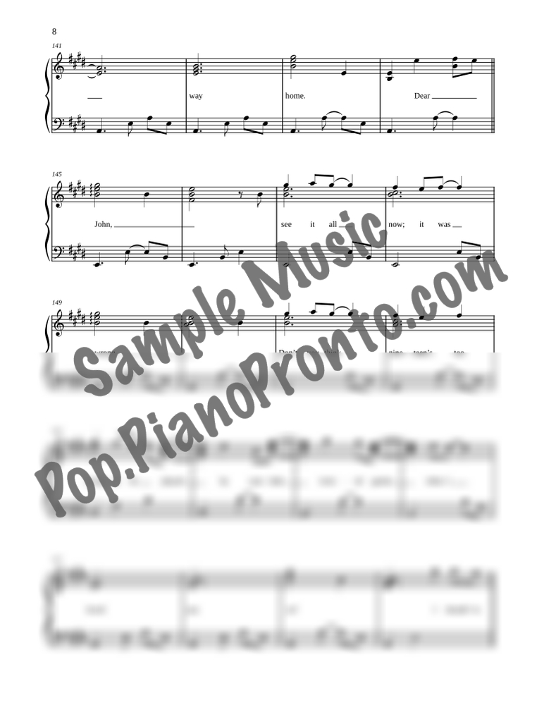 Dear John, as performed by Taylor Swift, in a sparkling lyrical arrangement by Jennifer Eklund. This is a full version with all sections included and a run-time just under 7 minutes.