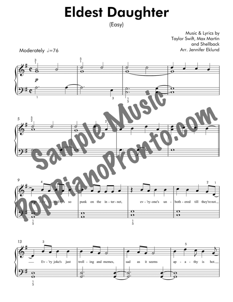 Eldest Daughter, as performed by Taylor Swift from album "The Life of a Showgirl" stylishly arranged for easy piano by Jennifer Eklund.