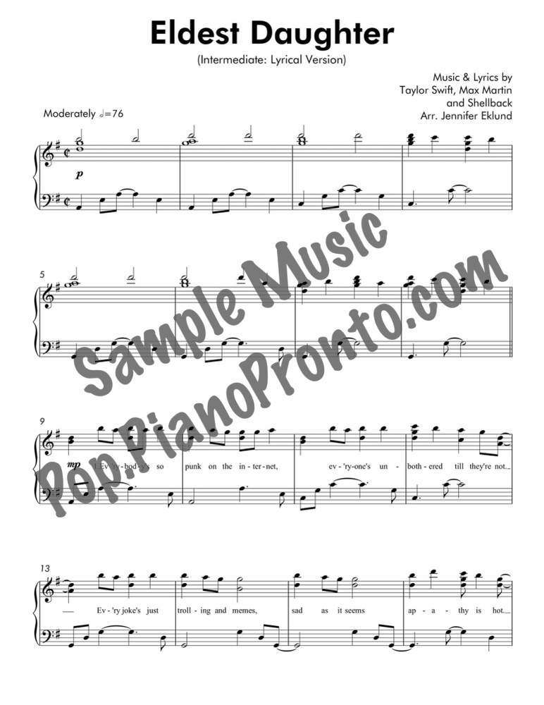 Eldest Daughter, as performed by Taylor Swift from album "The Life of a Showgirl" set here as a sparkling lyrical piano solo for intermediates by Jennifer Eklund.