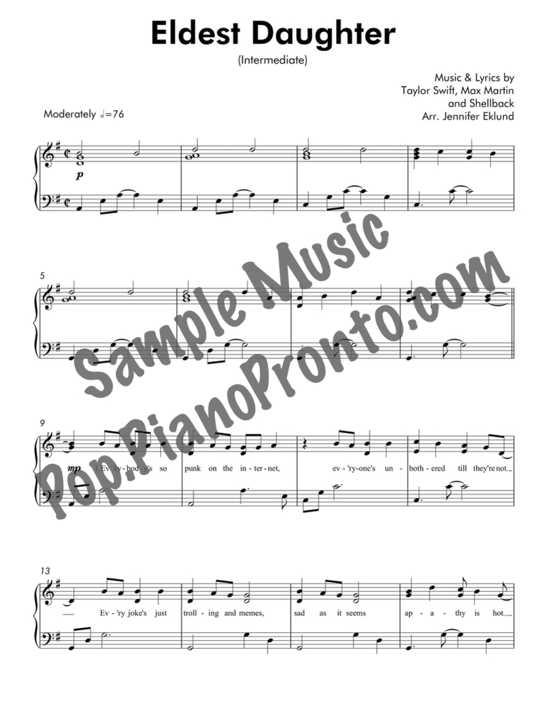 Eldest Daughter, as performed by Taylor Swift from album "The Life of a Showgirl" stylishly arranged for intermediate piano by Jennifer Eklund.