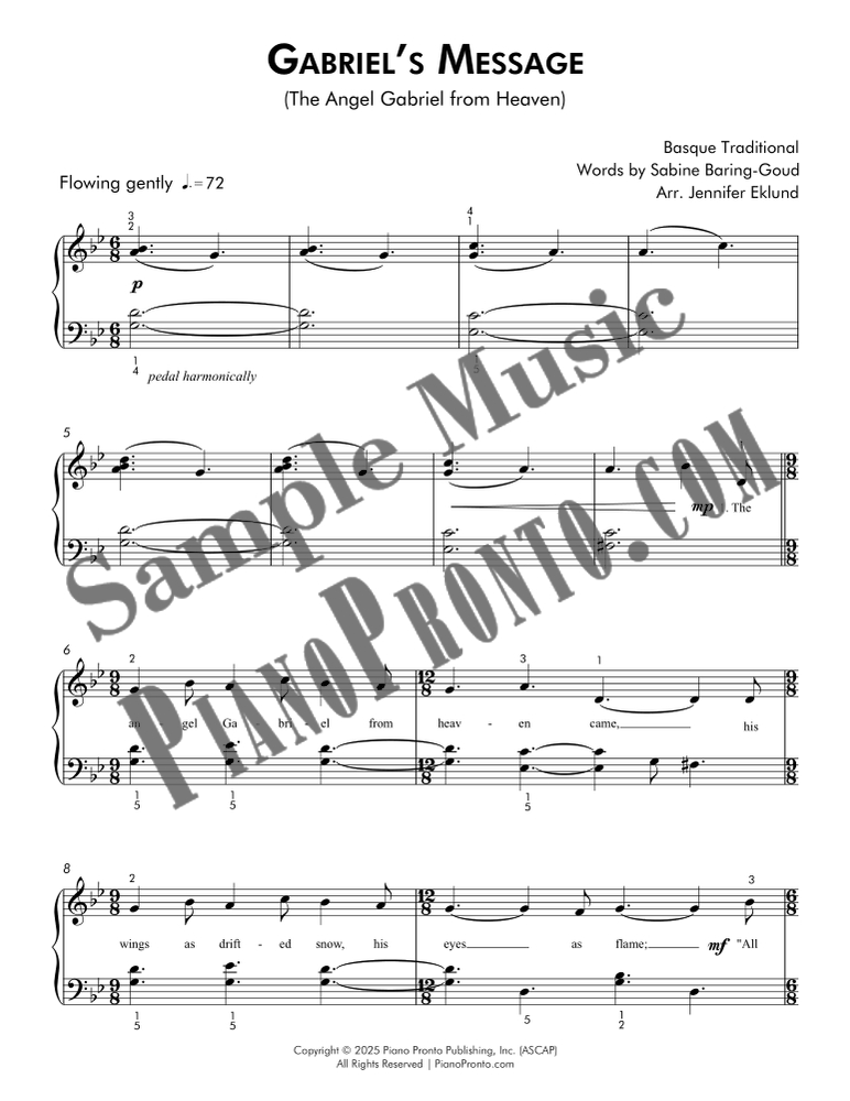 Gabriel’s Message (The Angel Gabriel from Heaven), a traditional Basque carol, in a contemporary lyrical setting for early intermediates by Jennifer Eklund.