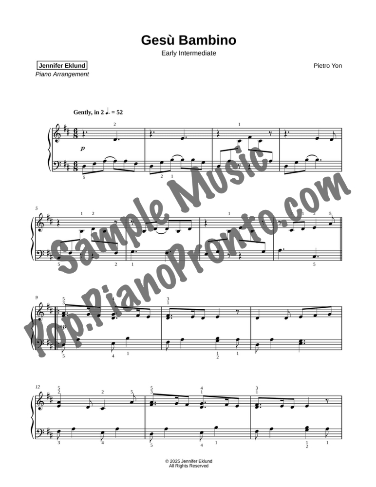 Gesú Bambino, arranged in a gentle lyrical style for early intermediates by Jennifer Eklund. This piece is part of the “Easy Christmas Classics” holiday songbook.