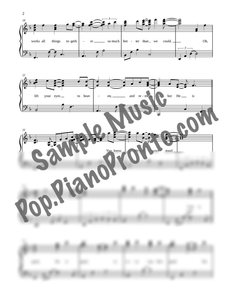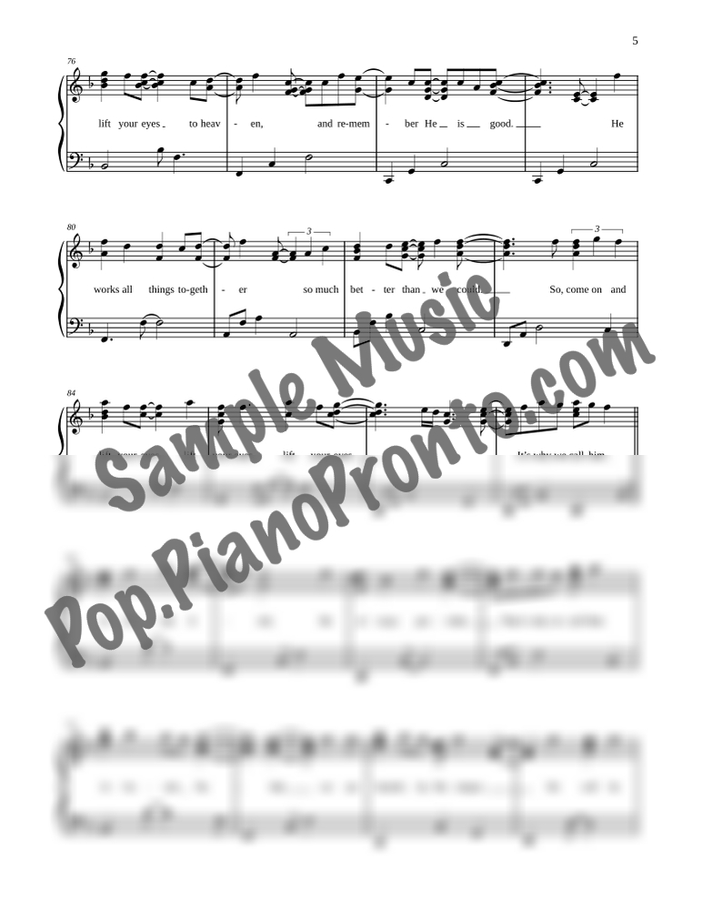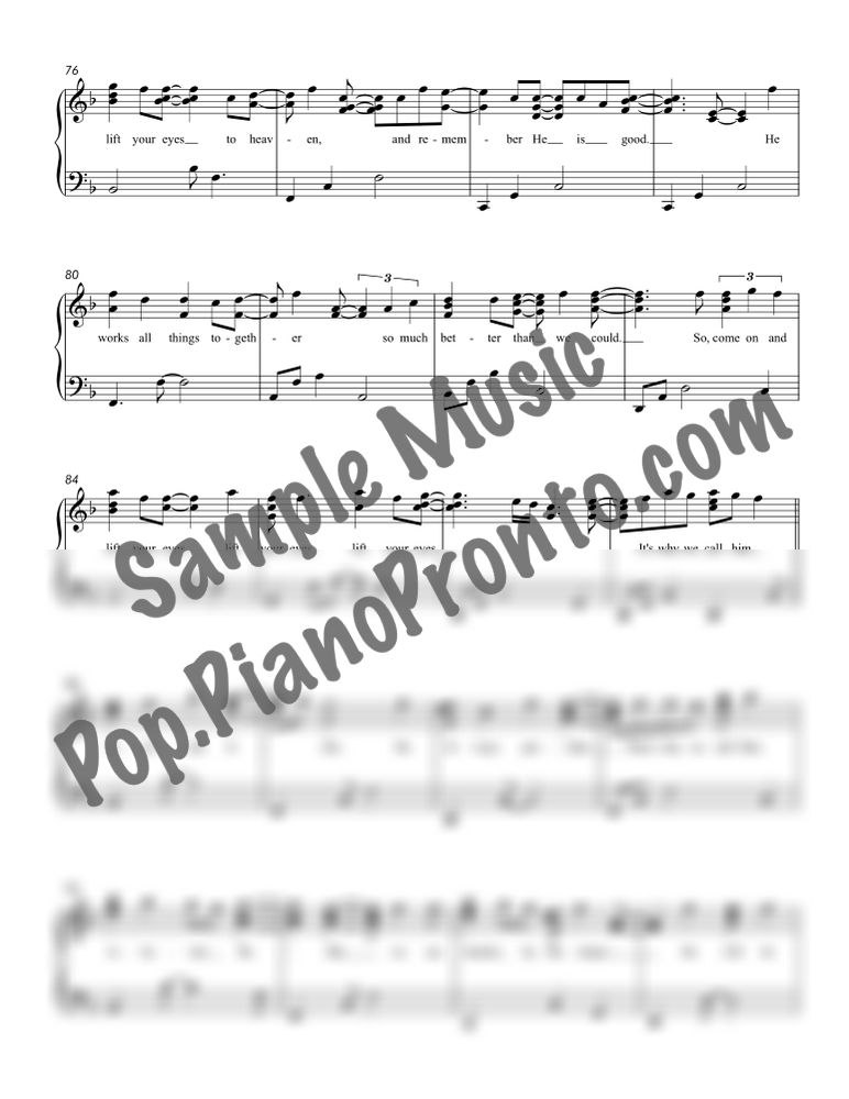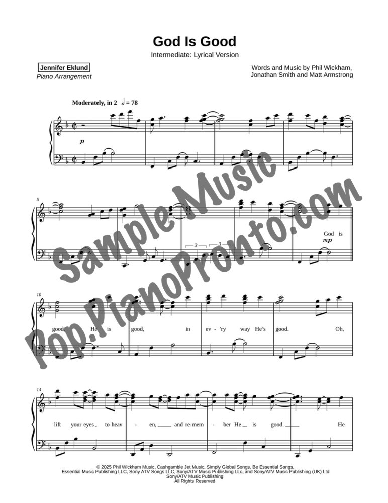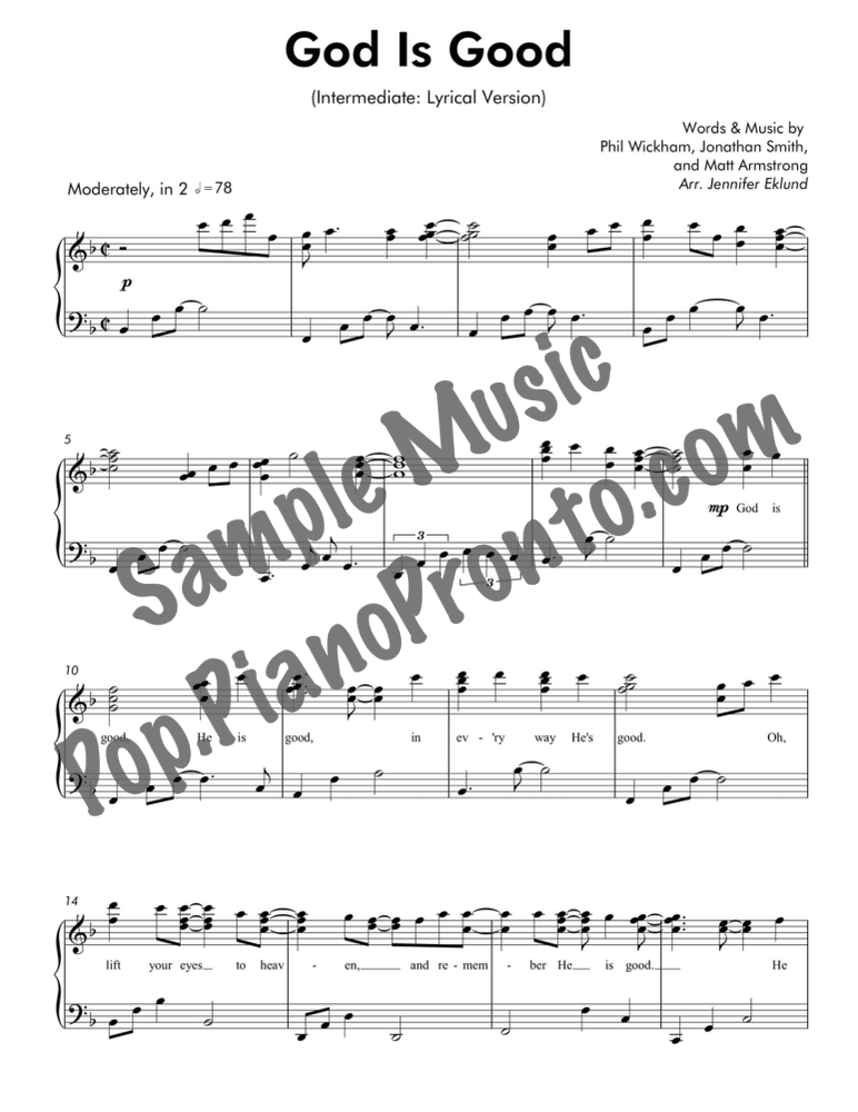God Is Good, as performed by Phil Wickham, set here as a sparkling lyrical piano solo for late intermediates and up by Jennifer Eklund. This version has the vocal range set higher.