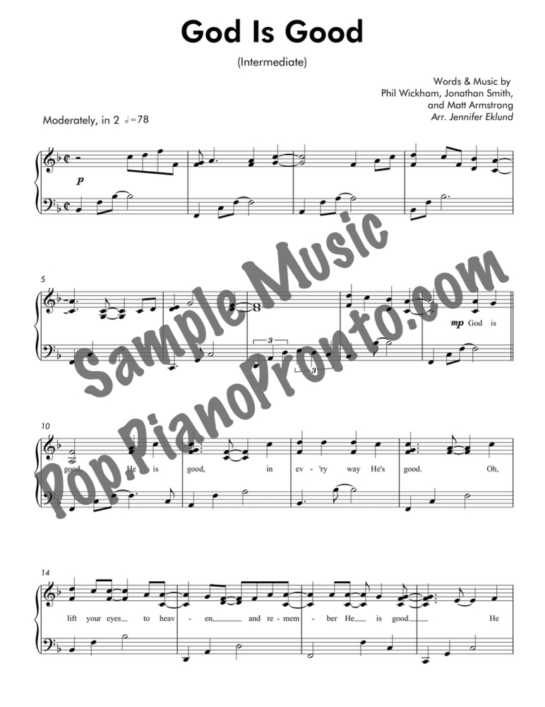God Is Good, as performed by Phil Wickham, set here as a sparkling lyrical piano solo for intermediates by Jennifer Eklund.