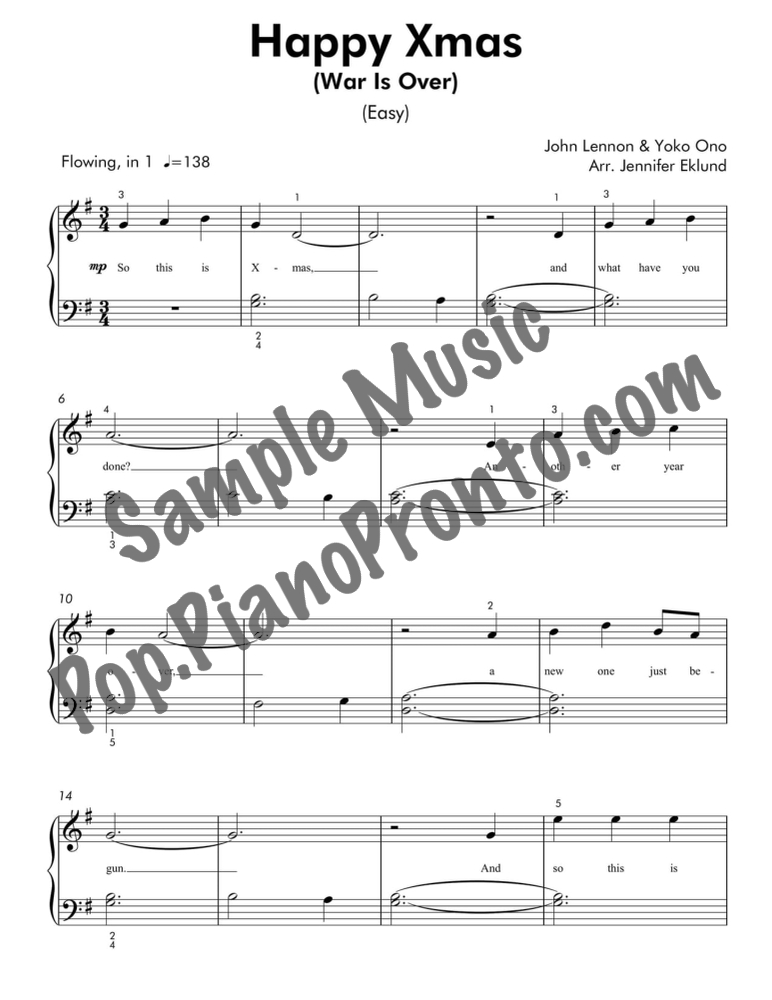 Happy Xmas (War Is Over), as performed by John Lennon, stylishly arranged for easy piano by Jennifer Eklund.