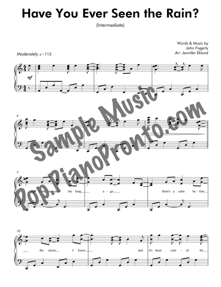 Have You Ever Seen the Rain?, as performed by Creedence Clearwater Revival, stylishly arranged for intermediate piano by Jennifer Eklund.