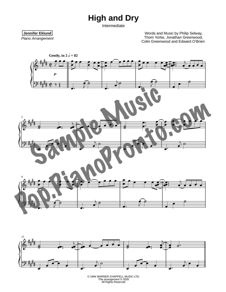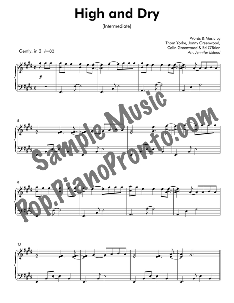 High and Dry, as performed by Radiohead, stylishly arranged for intermediate piano by Jennifer Eklund.