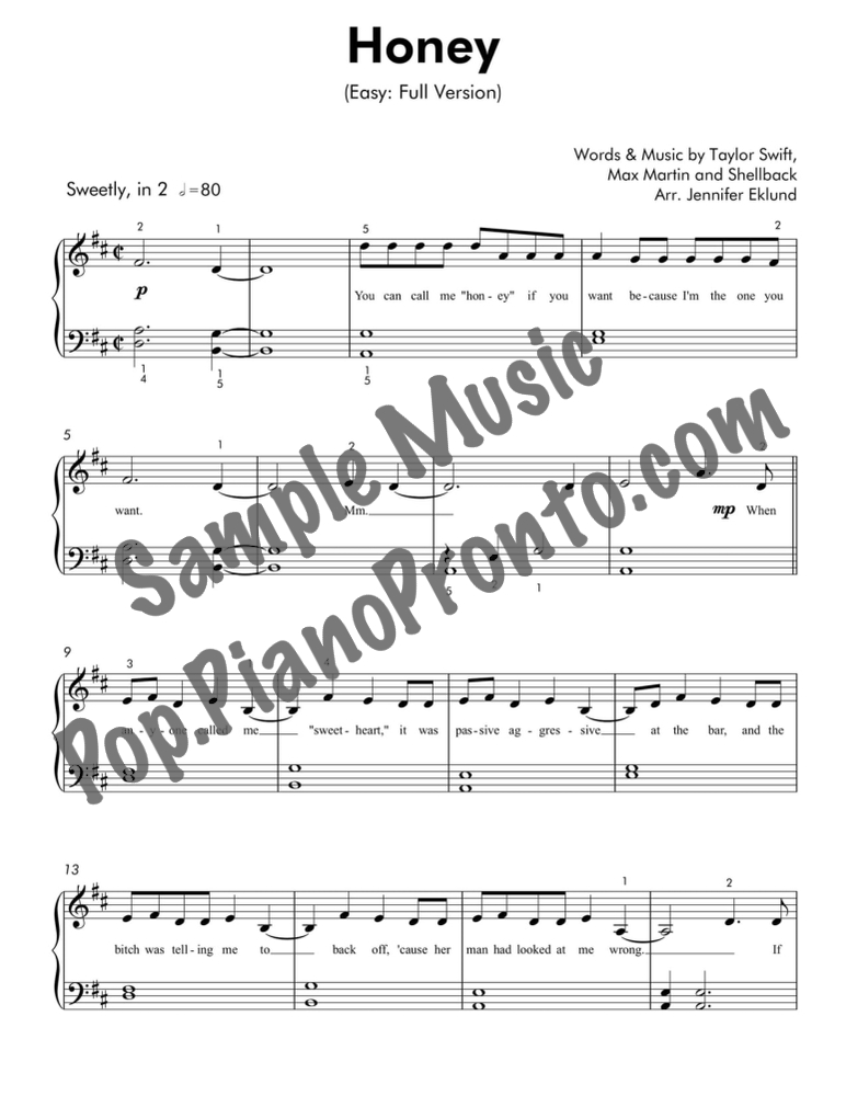 Honey, as performed by Taylor Swift from album "The Life of a Showgirl" stylishly arranged for easy piano by Jennifer Eklund.