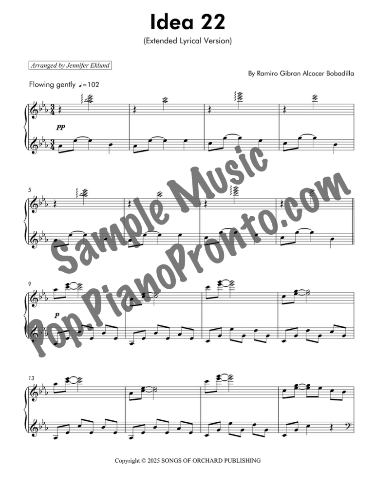 Idea 22, composed by Gibran Alcocer, set here as a sparkling lyrical piano solo by Jennifer Eklund. This is an extended version with added sections and a run-time around 7:30.