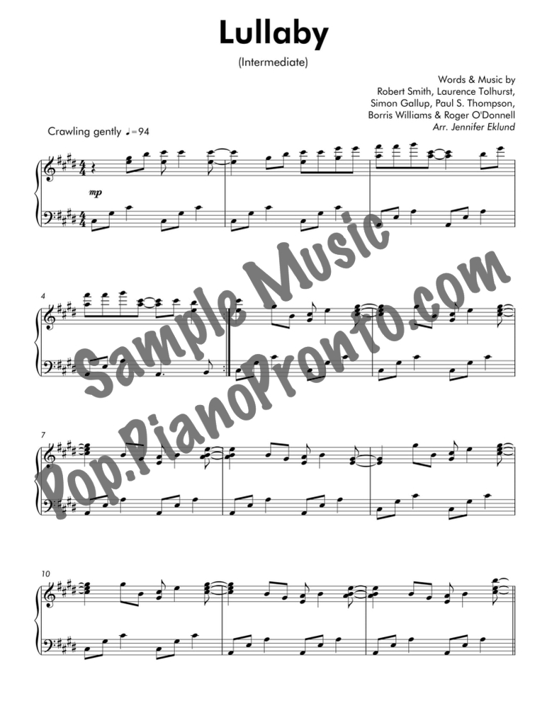 Lullaby, as performed by The Cure, stylishly arranged for intermediate piano by Jennifer Eklund.