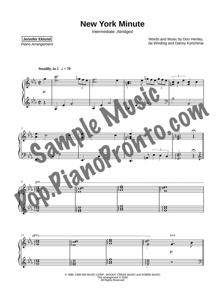 New York Minute, as performed by Don Henley, stylishly abridged and arranged for intermediate piano by Jennifer Eklund.