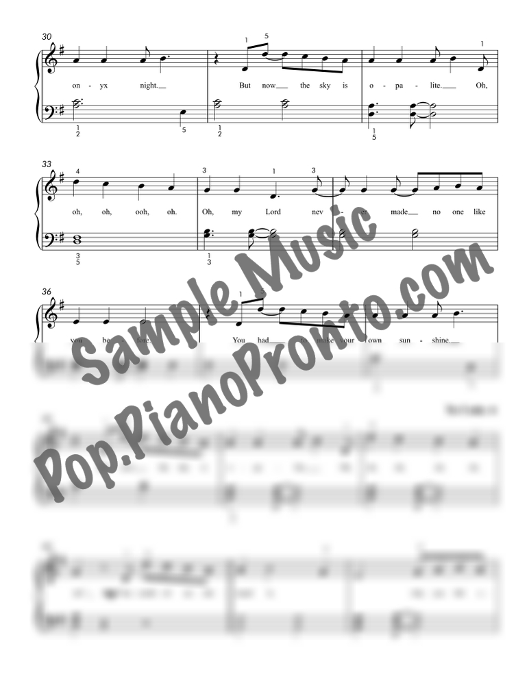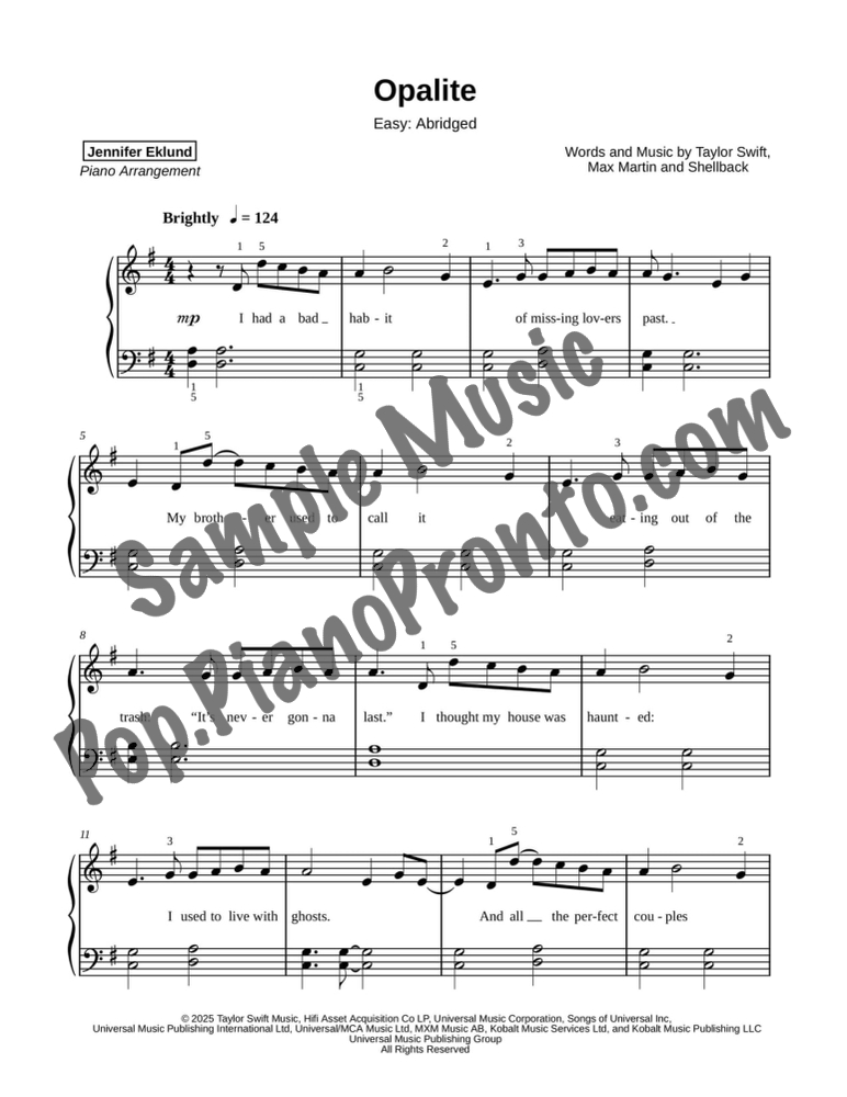 Opalite, as performed by Taylor Swift from album "The Life of a Showgirl" stylishly abridged and arranged for easy piano solo by Jennifer Eklund.