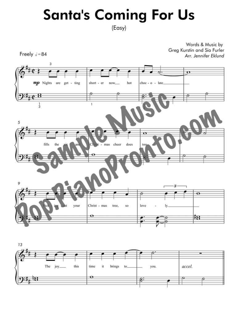 Santa's Coming for Us, as performed by Sia, stylishly arranged for easy piano by Jennifer Eklund.