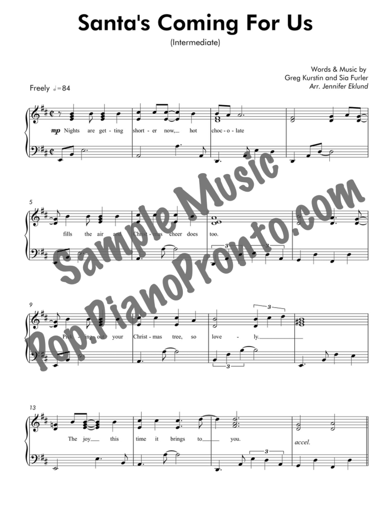 Santa's Coming for Us, as performed by Sia, stylishly arranged for intermediate piano by Jennifer Eklund.