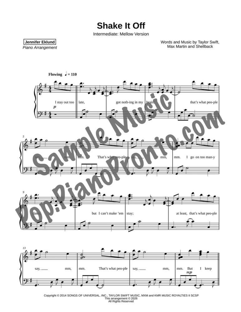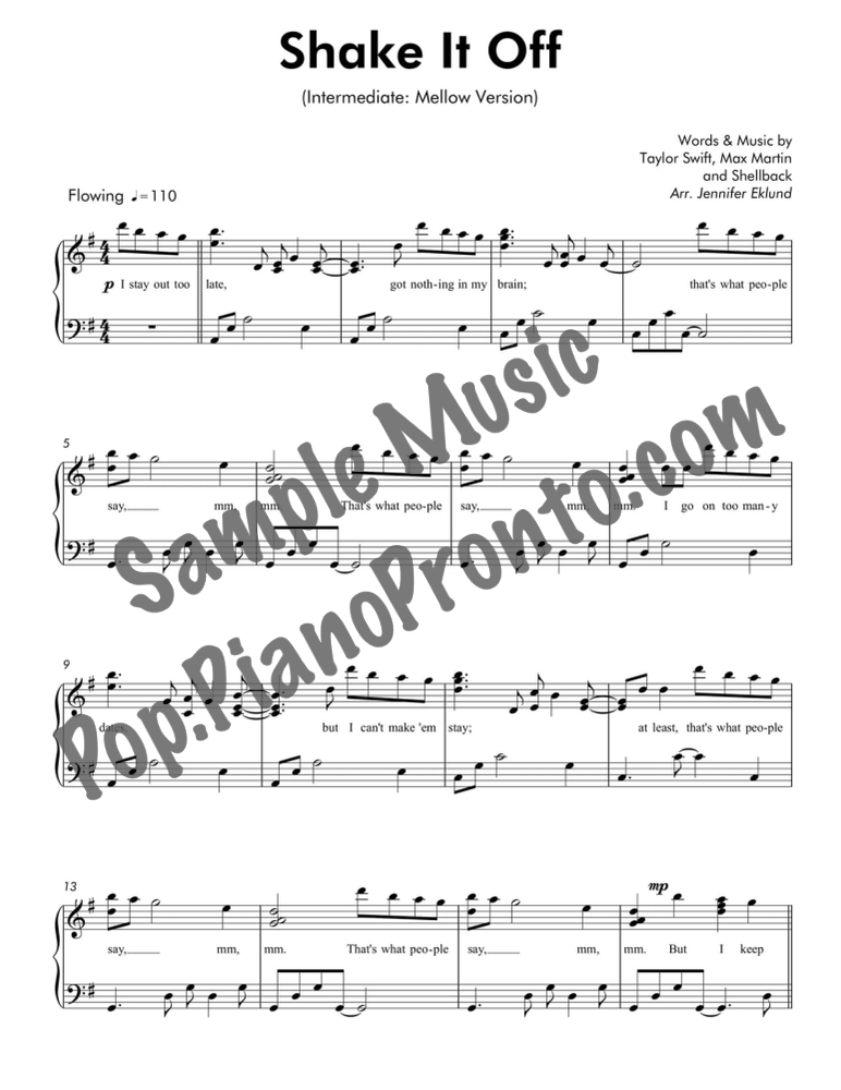 Shake It Off, as performed by Taylor Swift, reimagined in a mellow arrangement for intermediate piano by Jennifer Eklund.