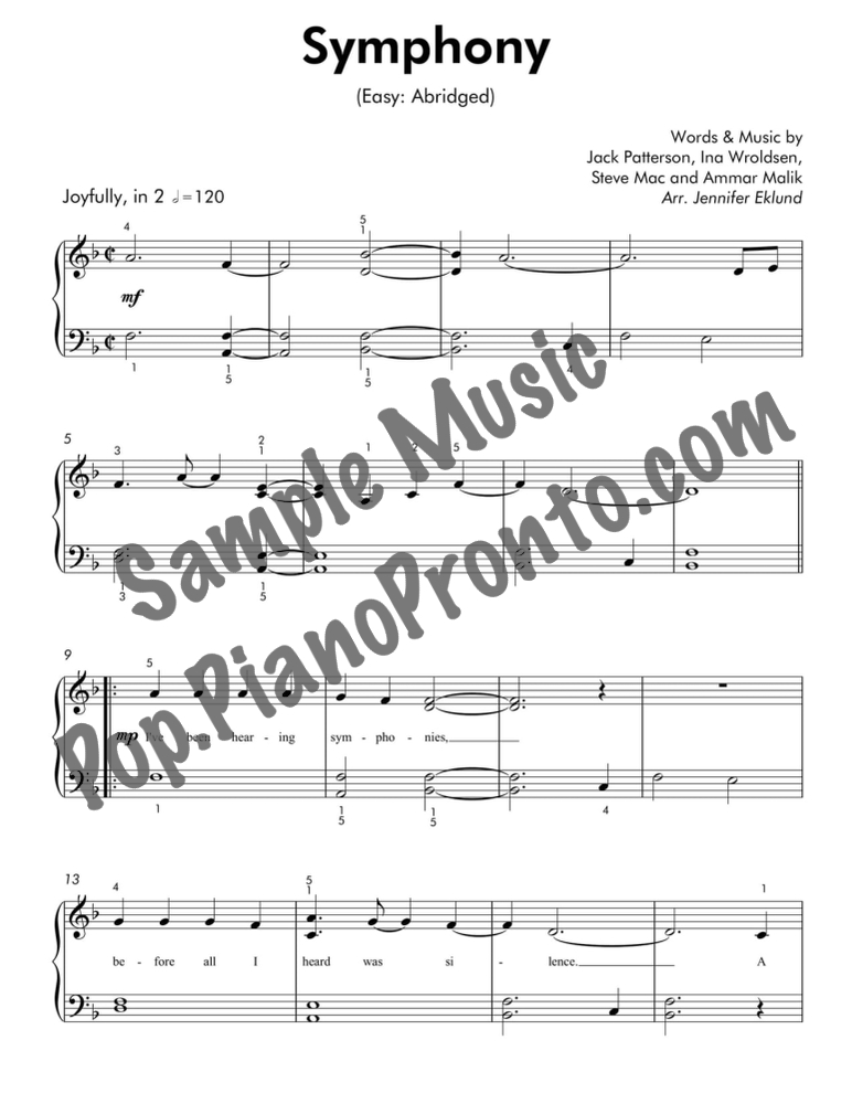 Symphony, as performed by Clean Bandit featuring Zara Larsson, stylishly arranged for easy piano by Jennifer Eklund.