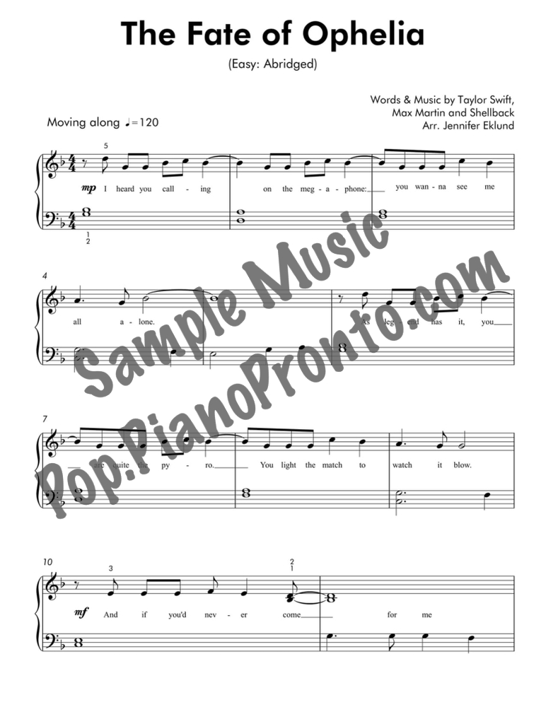 The Fate of Ophelia, as performed by Taylor Swift from album "The Life of a Showgirl" stylishly abridged and arranged for easy piano by Jennifer Eklund.