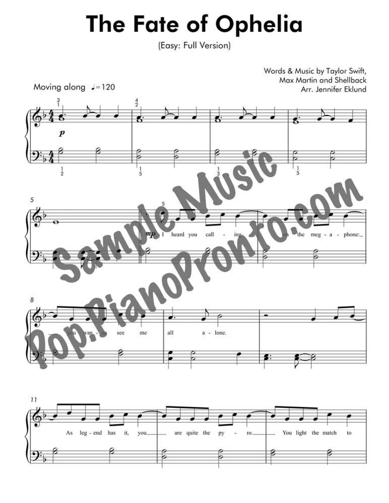 The Fate of Ophelia, as performed by Taylor Swift from album "The Life of a Showgirl" stylishly arranged for easy piano by Jennifer Eklund. This is the full recorded version.