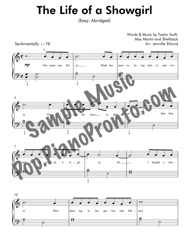 The Life of a Showgirl, as performed by Taylor Swift from album "The Life of a Showgirl" stylisly abridged and arranged for easy piano by Jennifer Eklund.