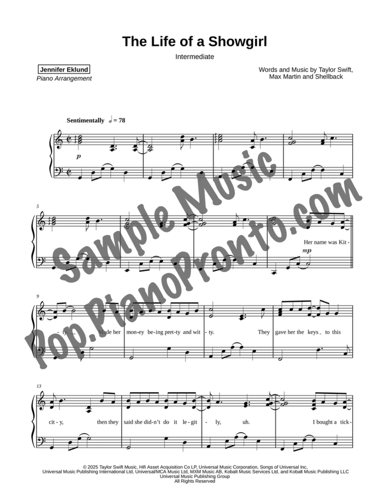 The Life of a Showgirl, as performed by Taylor Swift from album "The Life of a Showgirl" set here as a sparkling lyrical piano solo for intermediates by Jennifer Eklund.