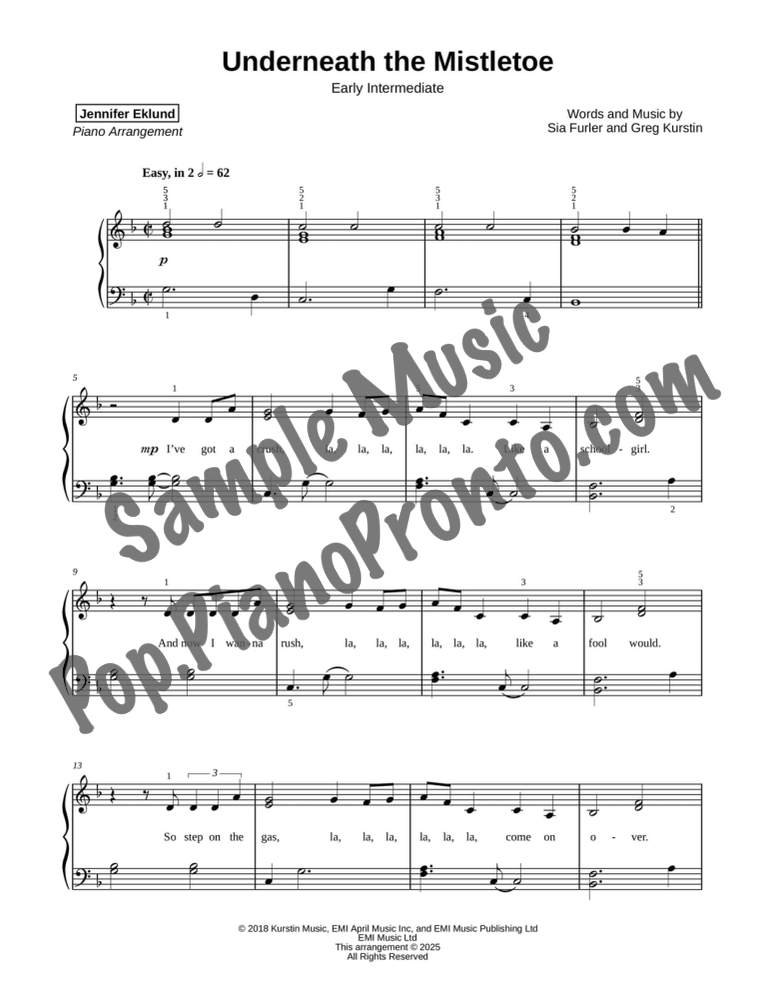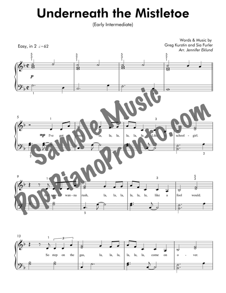 Underneath the Mistletoe, as performed by Sia, stylishly arranged for early intermediate piano by Jennifer Eklund.