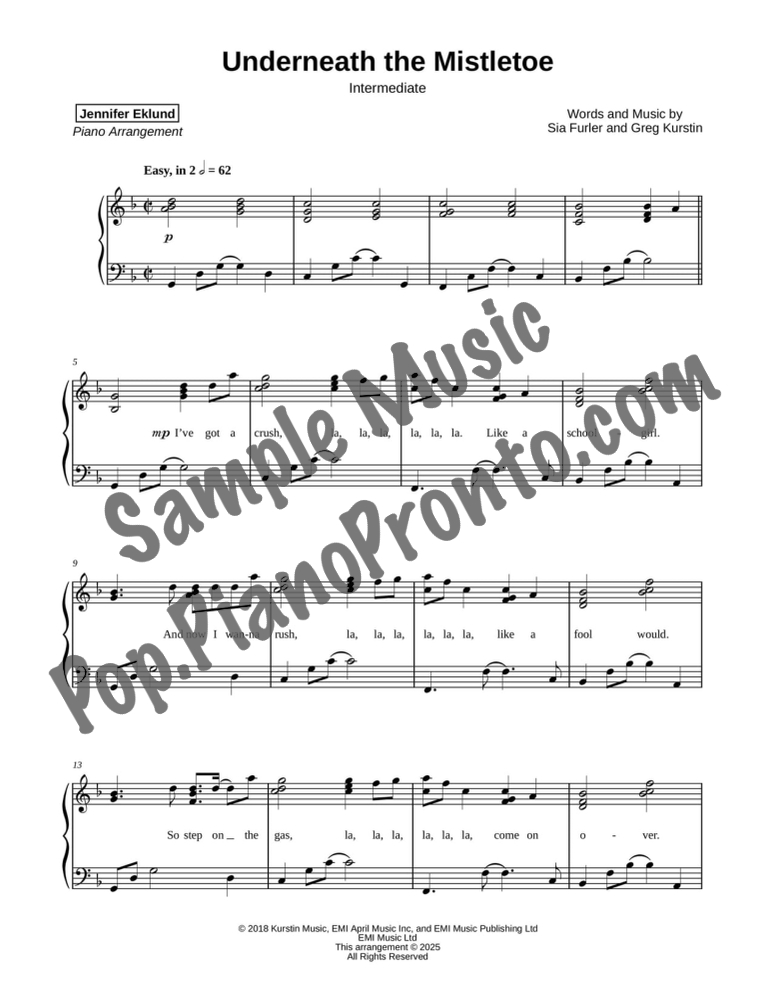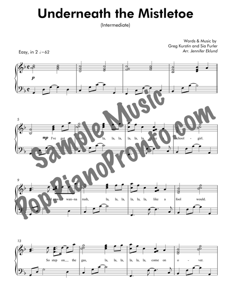Underneath the Mistletoe, as performed by Sia, stylishly arranged for intermediate piano by Jennifer Eklund.
