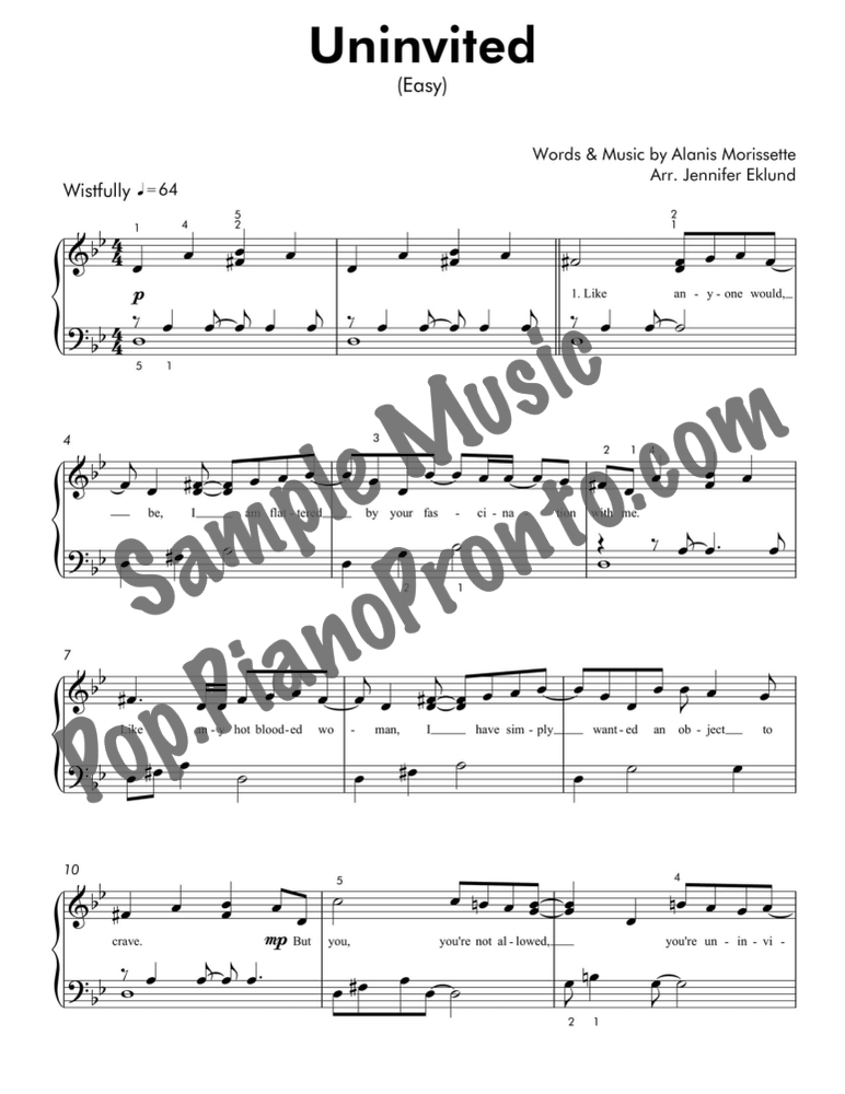 Uninvited, as performed by Alanis Morissette, stylishly arranged for easy piano by Jennifer Eklund.