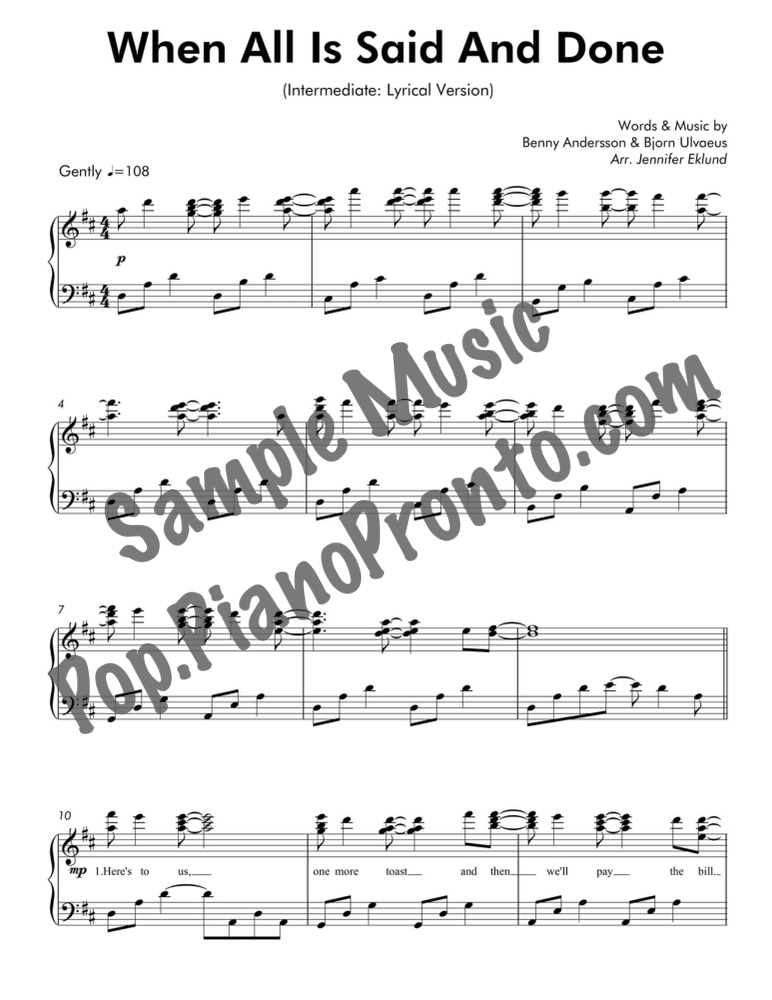 When All Is Said and Done, as performed by ABBA, in a sparkling lyrical arrangement for late intermediates by Jennifer Eklund.