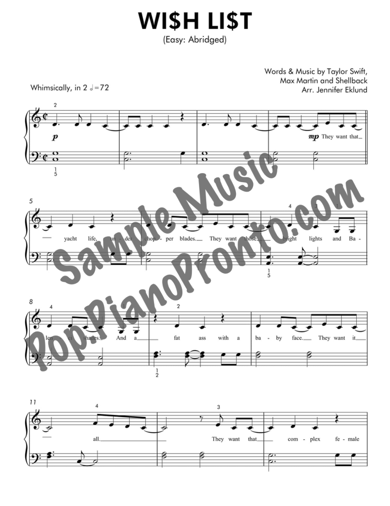 Wish List (Wi$h Li$t), as performed by Taylor Swift from album "The Life of a Showgirl" stylishly abridged and arranged for easy piano by Jennifer Eklund.