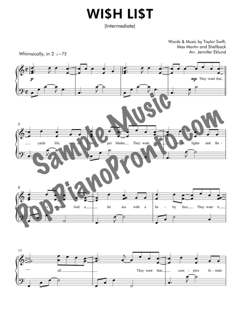 Wish List (Wi$h Li$t), as performed by Taylor Swift from album "The Life of a Showgirl" set here as a sparkling lyrical piano solo for intermediates by Jennifer Eklund.