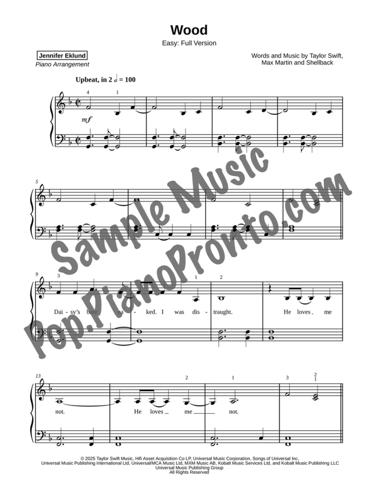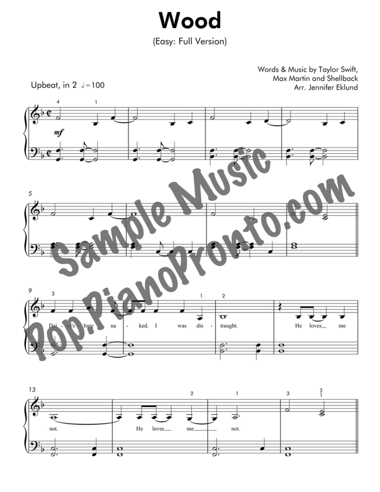 Wood, as performed by Taylor Swift from album "The Life of a Showgirl" stylishly arranged for easy piano by Jennifer Eklund.